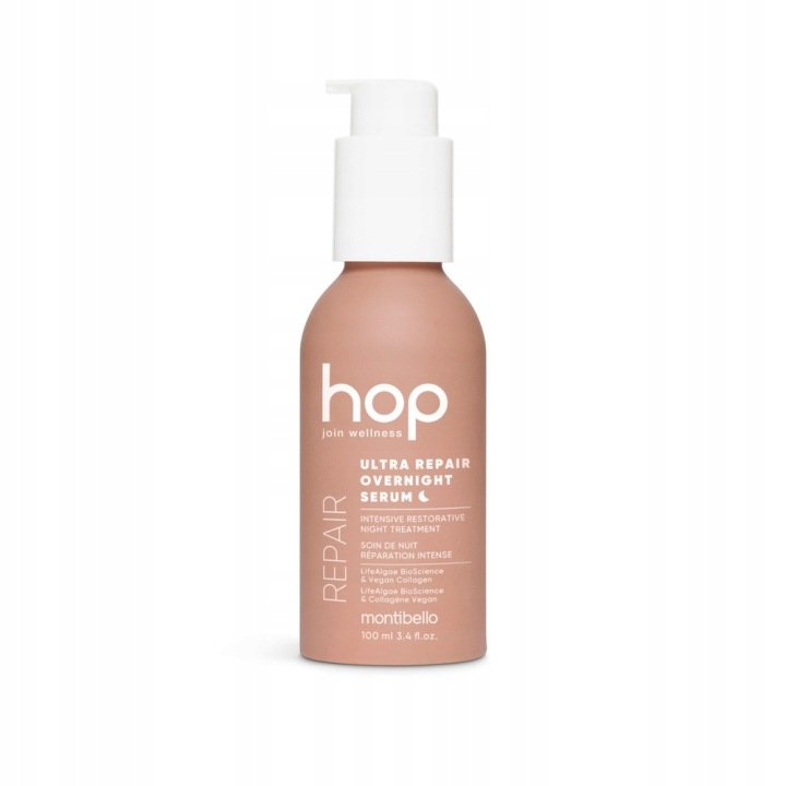 Nocna kuracja Montibello Hop Ultra Repair Overnight intensywnie regeneruje włosy podczas snu, wzmacniając ich strukturę i nadając miękkość oraz blask.